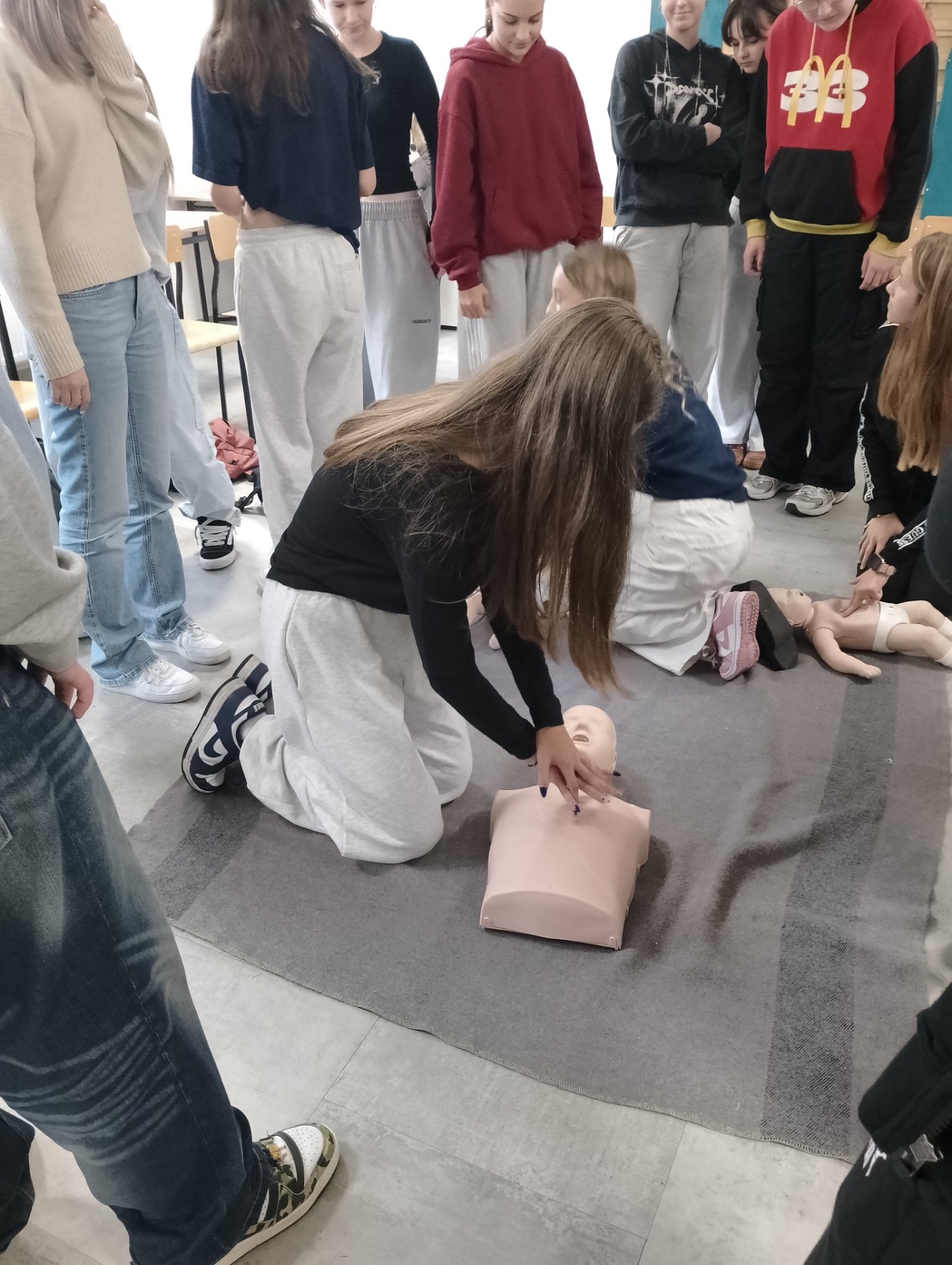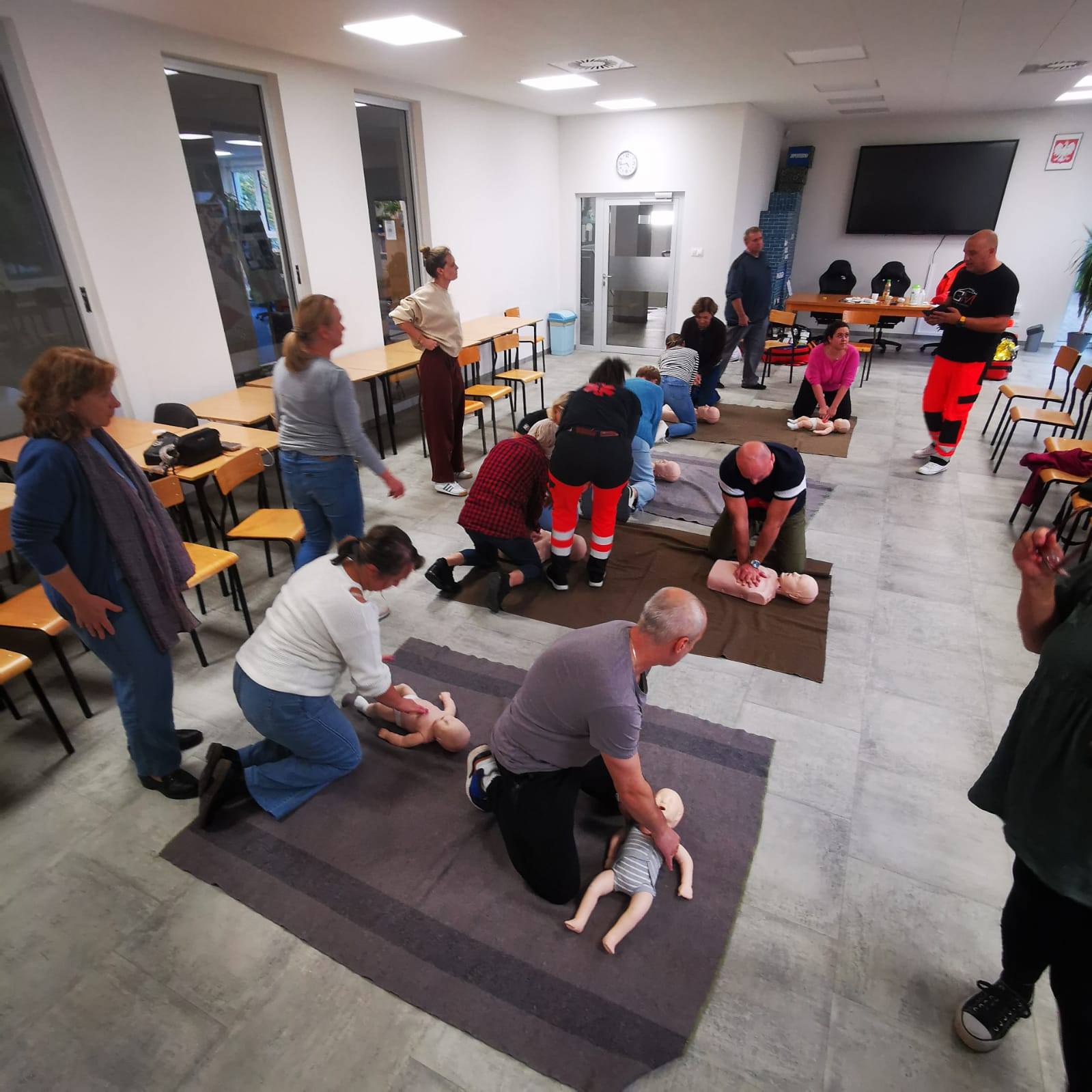 W części teoretycznej uczestników zapoznanom.in.z aspektam prawnymi udzielania pierwszej pomocy, w części praktycznej - ćwiczono resuscytację krążeniowo-oddechową, postępowanie podczas zawału, udaru oraz udzielania pomocy w przypadku ciała obcego w drogach oddechowych.