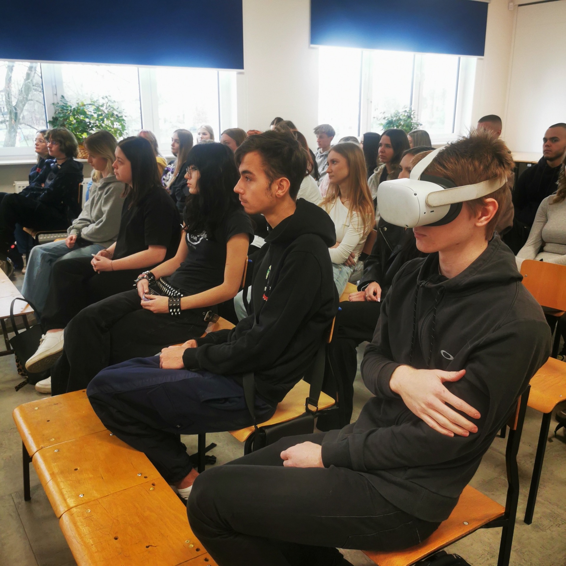 Uczniowie mogli założyć gogle VR, dzięki którym przenieśli się do wnętrza wojskowego samolotu i okrętu, a nawet „skoczyli” ze spadochronem! 🪂